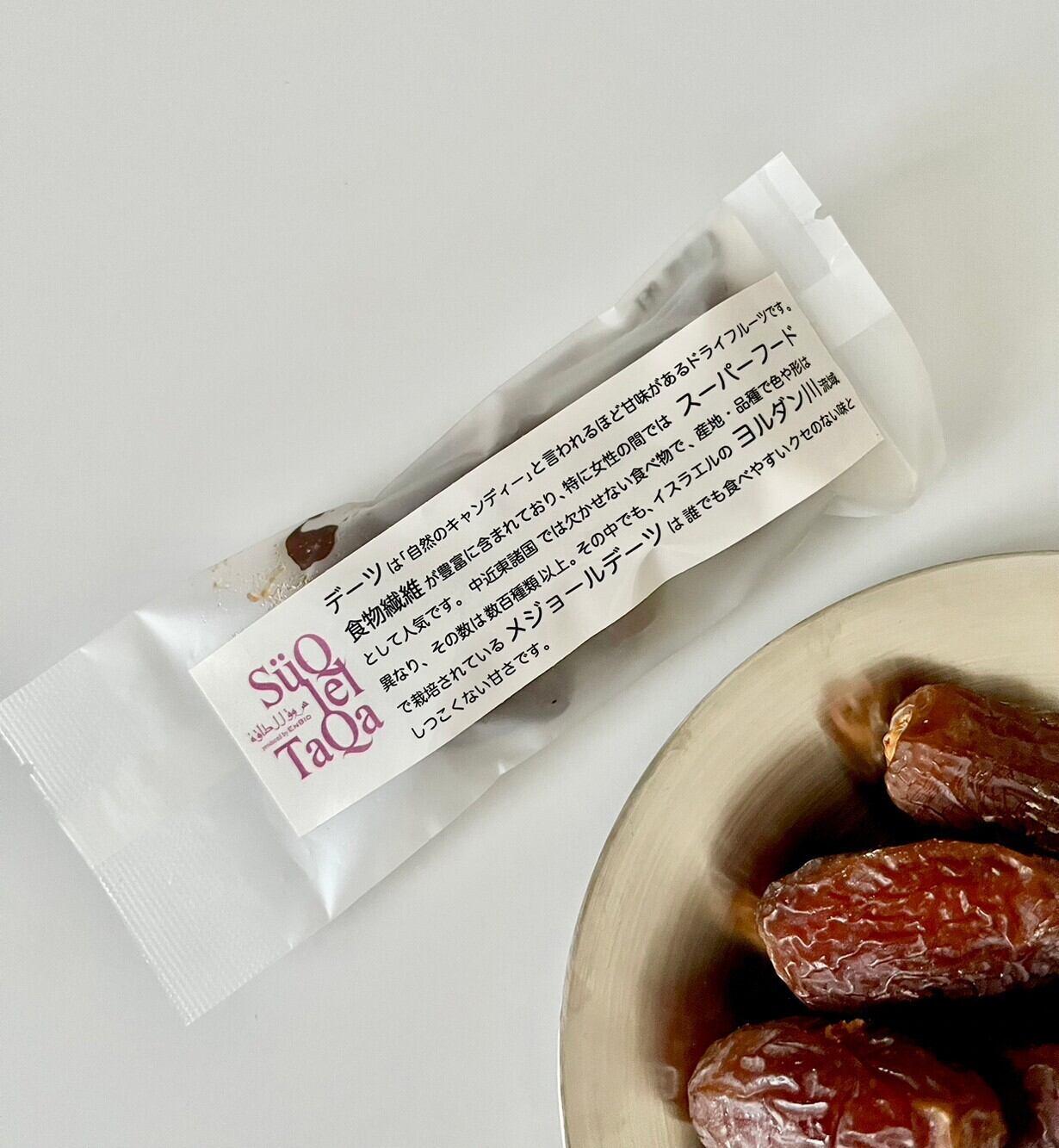 400品種以上あると言われるデーツのなかから、ヨルダン川流域で栽培されているイスラエル産のメジョールデーツを選びました。イスラエルのメジョールデーツは、粒が大きく、誰でもたべやすいクセのない味、干し芋のような食感です。食物繊維が豊富に含まれております。